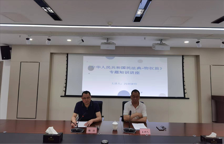 為進一步增強集團公司干部職工法律意識,提升學(xué)法遵法守法水平,2023年6月8日,市產(chǎn)業(yè)集團邀請了集團法律顧問馮劍律師,開展《民法典-物權(quán)篇》專題知識講座,集團公司本部全體職工及所屬企業(yè)部分代表共計30余人參加學(xué)習(xí)。