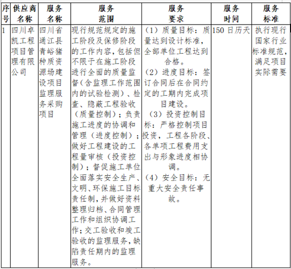 四川省通江縣青峪豬種質(zhì)資源場建設(shè)項目監(jiān)理服務(wù)采購項目成交公告