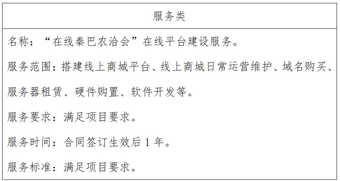 第三屆秦巴山區(qū)綠色農(nóng)林產(chǎn)業(yè)投資貿(mào)易洽談會“在線秦巴農(nóng)洽會”在線平臺建設(shè)服務(wù)。